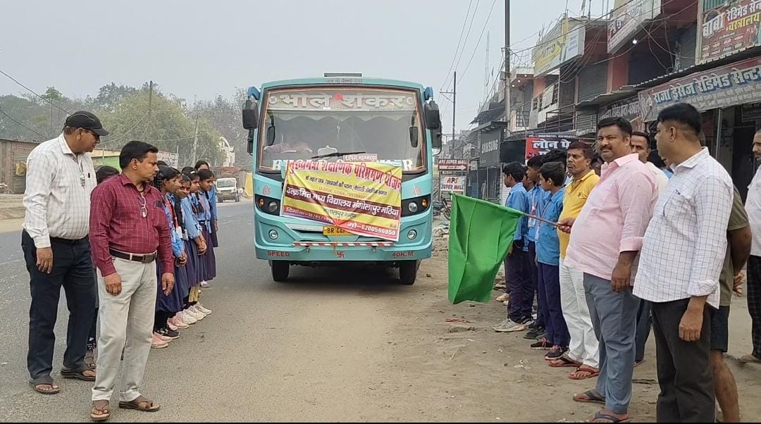 विद्यालय के शैक्षणिक भ्रमण टीम को बी डी सी ने पटना के लिए हरी झंडी दिखाकर किया रवाना